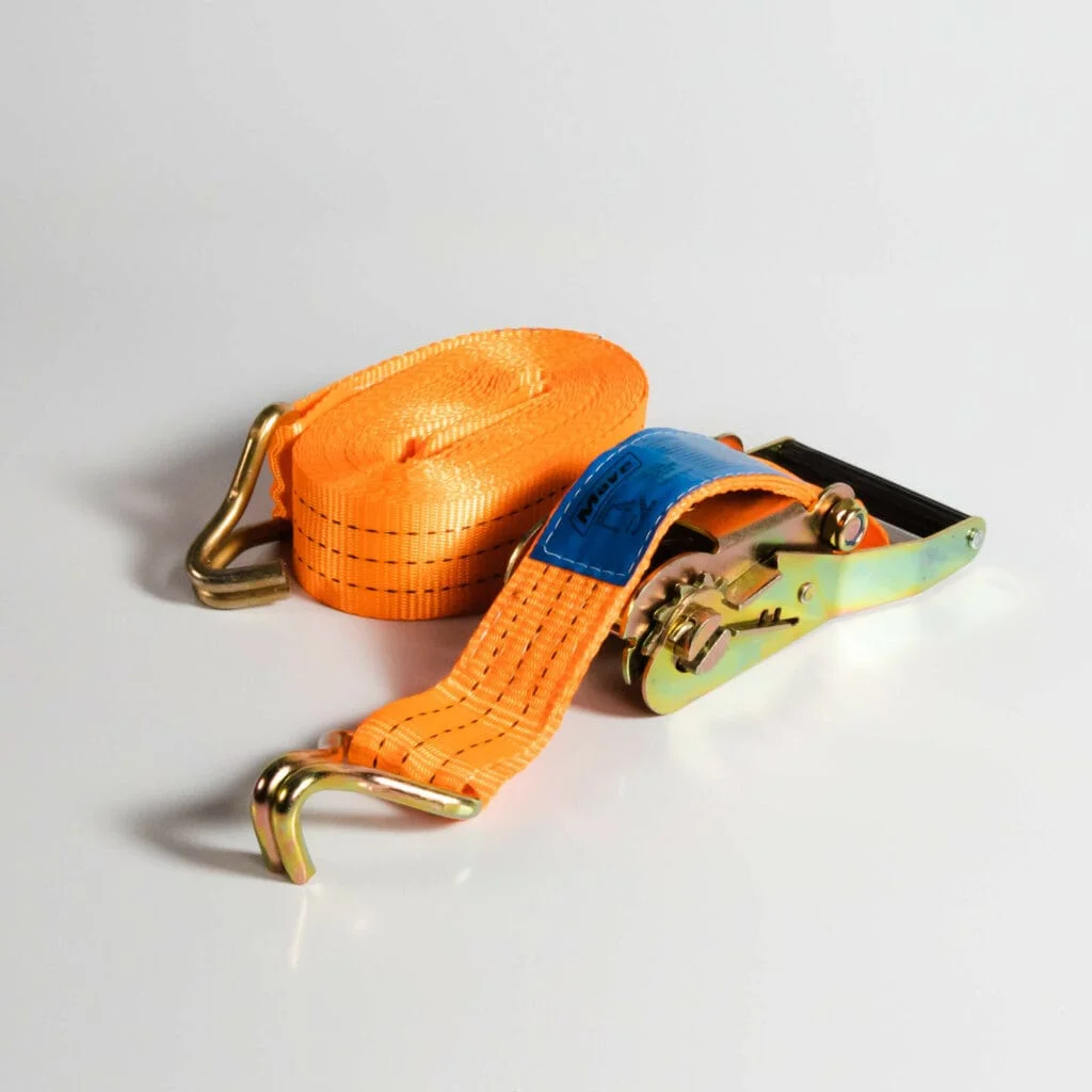 Quer reforçar ainda mais a segurança? Veja a versão de 5.000 kg da cinta com catraca laranja.